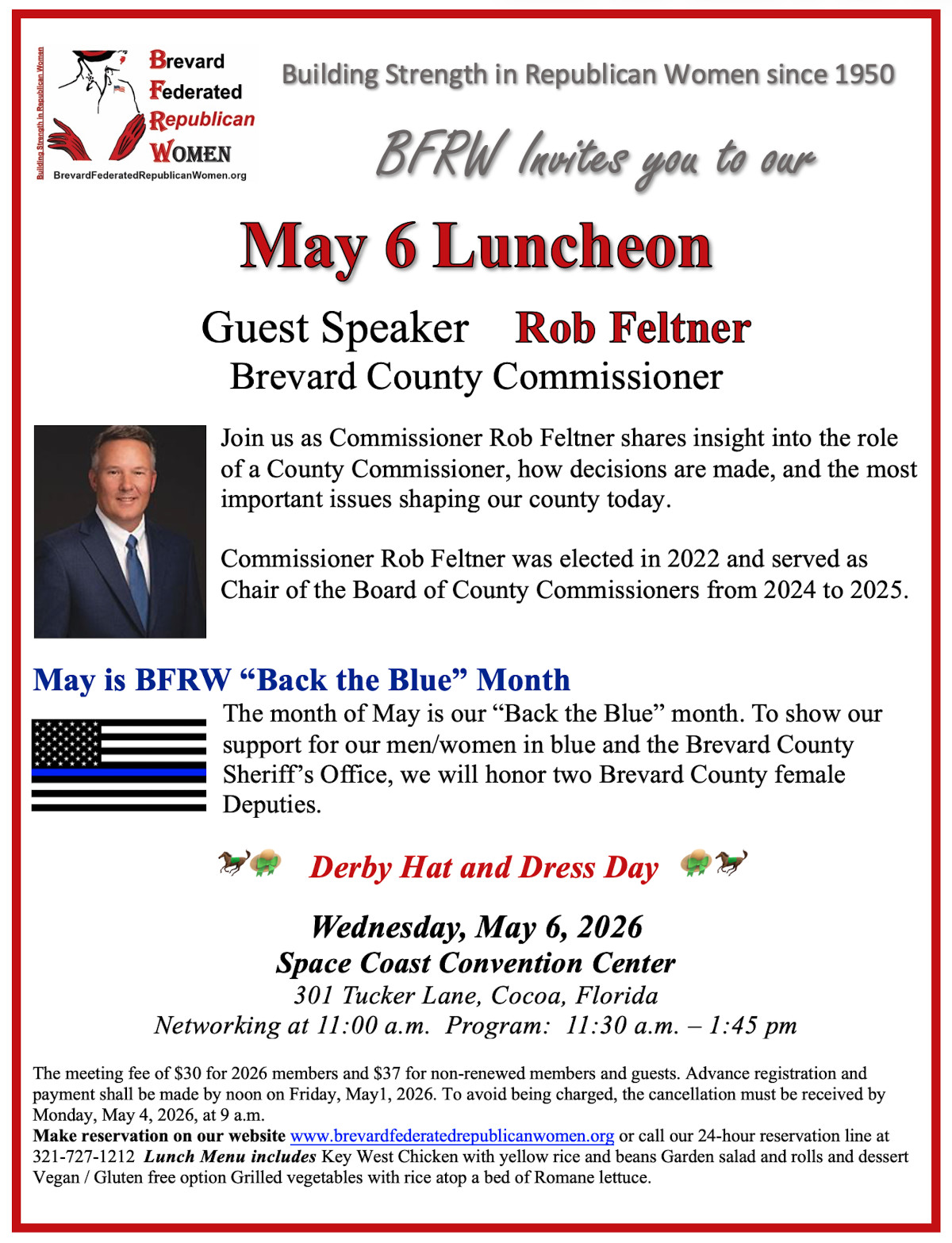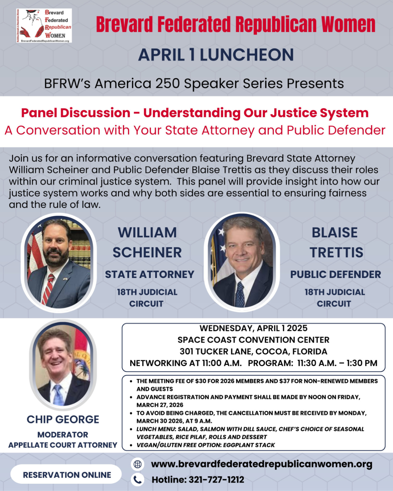 Please make check payable to BFRW, and return check to Brevard Federated Republican Women, P.O. Box 410143, Melbourne, Florida 32941